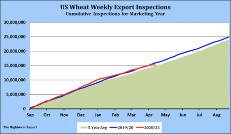 Wheat futures closed mixed. WH dropped 3 cents and closed near 6.72. KWH closed near 6.44. MWH closed near 6.43. Talk of lower Russia wheat exports to near 32-34 mmt versus USDA 39 is supportive. China wheat futures were higher. China sold 3.9 mmt of wheat from reserve at prices $27 per tonne higher than last week. Talk of tighter EU wheat supplies pushed Matif wheat futures to new highs. Weekly US wheat exports were near 276 mt (10 mil bu). Season to date exports are near 15.5 mmt (572 mil bu) versus 15.9 (587 mil bu) last year. USDA goal is 26.8 mmt ( 985 mil bu) versus 26.2 (965 mil bu) last year. WH initial support is near 6.60. Talk of new virus cases in China and continued increase cases globally raised concern that economic turnaround could be delayed which could delay increase in food demand.