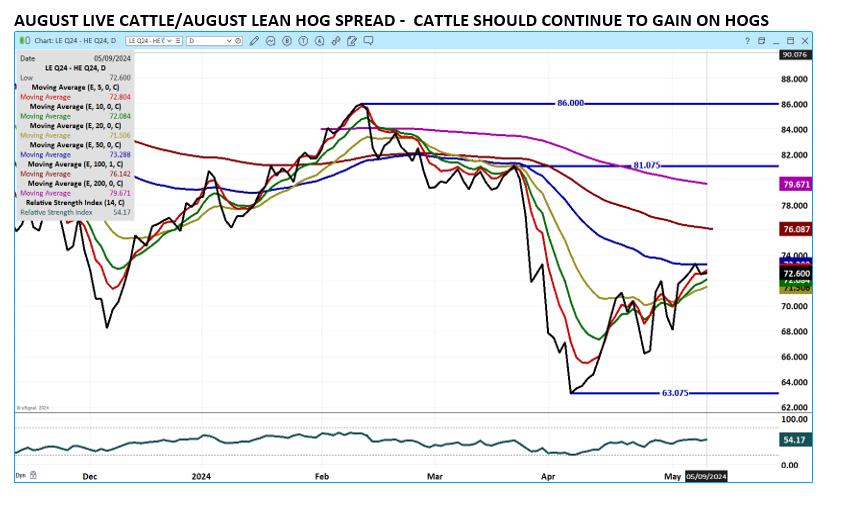 Volume was light to moderate Thursday. June is moving lower to the cash with months following June lower. May 2024 Lean Hogs, a contract normally used by a few hedgers is trading nearly at the level as the CME Lean Hog Index. Exports were disappointing particularly because Mexico bought so little.