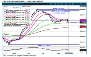 Trade volume was moderate Wednesday.  Futures have been trading sideways since mid-July.  Most active trading are spreaders bear spreading and selling hogs and buying cattle