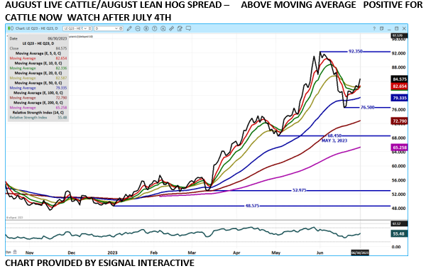 Hogs pretty much traded the report. July is going to trade with the direction of pork and August is lower to July but premium to October will continue being the middle leg of spreaders.