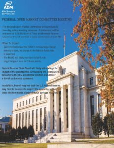 Futures and options trading involve significant risk of loss and may not be suitable for everyone.  Therefore, carefully consider whether such trading is suitable for you in light of your financial condition.  The information and comments contained herein is provided by ADMIS and in no way should be construed to be information provided by ADM.  The author of this report did not have a financial interest in any of the contracts discussed in this report at the time the report was prepared.  The information provided is designed to assist in your analysis and evaluation of the futures and options markets.  However, any decisions you may make to buy, sell or hold a futures or options position on such research are entirely your own and not in any way deemed to be endorsed by or attributed to ADMIS. Copyright ADM Investor Services, Inc.