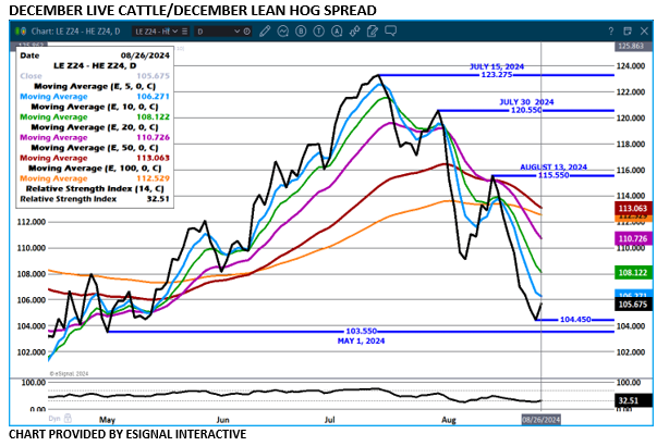 For a day after a Cattle on Feed report trade volume was light. August live cattle were higher as the discounted futures moved closer to last week’s cash prices. The coming week packers will be buying cattle for a short kill with labor day on September 2nd. They also will be able to bring up their own cattle and contract cattle the first of the month. Also, cattle are heavier. Additional weight is bearish.