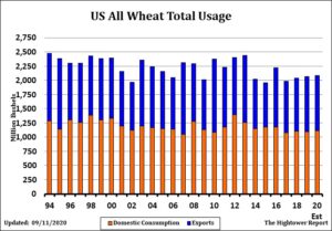 Wheat futures traded higher. Managed funds continue to add to longs. Dry weather in Russia, Argentina and US south plains is triggering the new buying. None of these areas are forecasted to see rain over the next 2 weeks. This is raising concern over US south plains and Russia winter wheat germination. WZ made new highs and is now testing 2015 highs. KWZ traded over the 200 day moving average. Next resistance is near 5.80. MWZ is near key resistance. CME Black Sea wheat futures are making all-time highs. Russia domestic wheat and flour prices are also record high. Australia prices trade up to near May highs. Managed funds were net buyers of 10,000 wheat. Managed funds are net long 62,000 wheat. Trade estimates US weekly wheat export sales near 250-600 mt versus 506 last week. USDA goal is 26.5 mmt versus 26.3 last year. Trade will be watching closely and news about 2021 Russia export quotas. Most feel USDA could raise the 2020 Russia crop 3-4 mmt to 82-83. This could allow for higher quotas and Russia front loading exports. Still if they take into account a lower 2021 crop they could limit quotas.